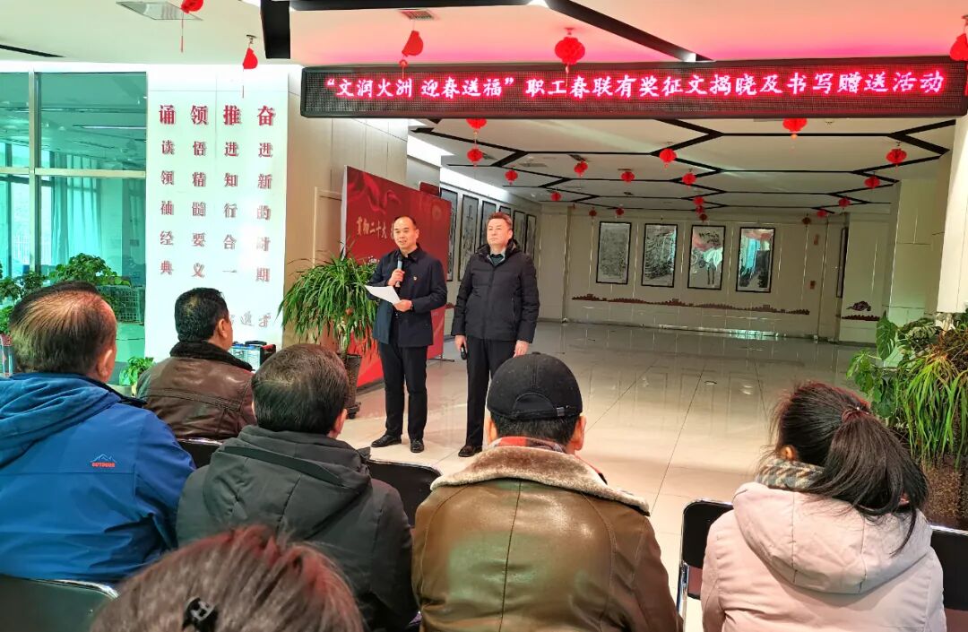 一副春联是一幅美丽的画卷,一副春联是一声美好的祝福。1月23日下午,由吐鲁番市文联携手市委宣传部、市总工会、科协、妇联联合举办的“文润火洲 迎春送福”职工春联大赛有奖征文揭晓及书写赠送活动在市图书馆拉开帷幕。市文联现场公布了获奖获奖人员名单,并邀请市音协、书协艺术家朗诵及书写获奖春联。 据悉,自2023年12月12日开展“文润火洲 迎春送福”职工春联大赛有奖征文活动以来,得到了全国各地广大楹联爱好者的热情参与和支持,截止2024年1月10日,共收到151名作者的441幅春联作品。经过市作协、诗词协会5名专家组成评选小组,并征求各参与单位的意见后,“胜景称奇,山中火焰山前绿;新春致远,沟内葡萄沟外香”等110幅优秀春联脱颖而出,分获一二三等奖及优秀奖。 此次获奖春联的内容可谓百花齐放,精彩纷呈,从不同角度书写了吐鲁番丰富的自然、人文、历史面貌以及近年来经济社会发展成就,一幅幅春联都是作者们潜心创作的才智结晶,具有较高的艺术价值和艺术水准。